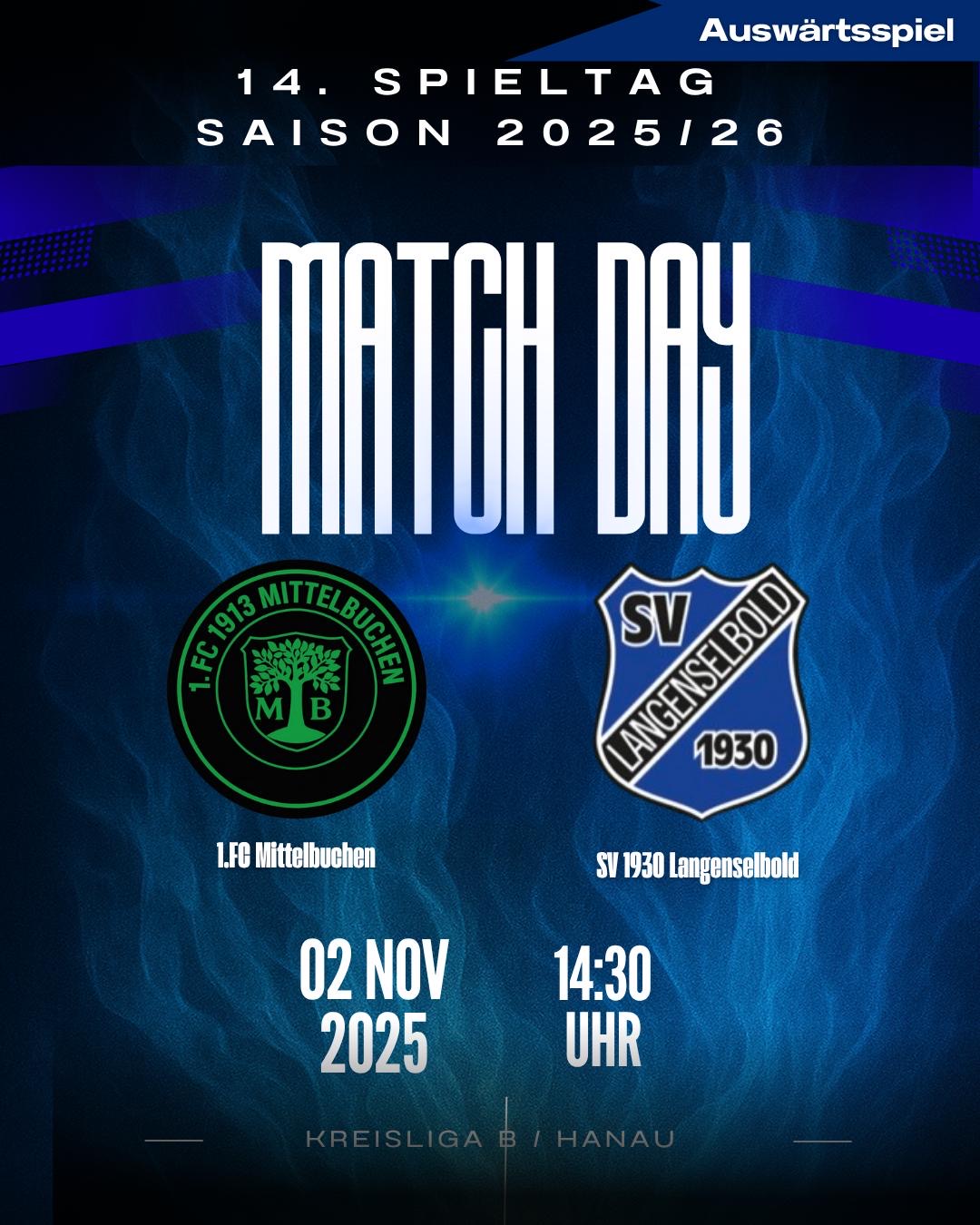 ⚽ MATCHDAY | Sonntag, 2. November 2025 Am Sonntag stehen wieder Auswärtsspiele für beide Teams an! 💙🤍 Nach einem schwierigen Wochenende wollen unsere Jungs eine Reaktion zeigen und geschlossen auftreten. 💪 ⸻ 💥 1. Mannschaft 🆚 1.FC Mittelbuchen – SV 1930 Langenselbold 📍 Auswärts in Mittelbuchen 🕝 Anpfiff: 14:30 Uhr Nach zuletzt durchwachsenen Leistungen will die Mannschaft wieder kompakter stehen, konzentrierter agieren und Schritt für Schritt zurück in die Spur finden. 💪⚽ ⸻ ⚔️ 2. Mannschaft 🆚 Eintracht Oberrodenbach II – SV 1930 Langenselbold II 📍 Auswärts in Oberrodenbach 🕧 Anpfiff: 12:30 Uhr Auch unsere Zweite will zeigen, dass mehr in ihr steckt. Gemeinsam anpacken, Laufbereitschaft zeigen und alles reinwerfen! 💙🤍 ⸻ 📣 Volle Unterstützung auch auswärts – gemeinsam Blau-Weiß!