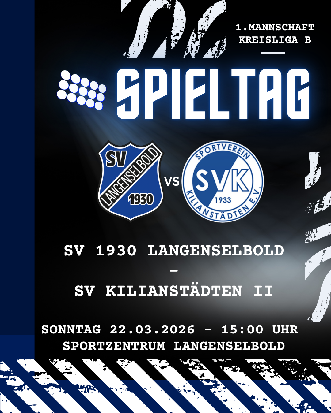 Damen Auswärts – Herren Zuhause Schreibe einen Kommentar / Von sv1930 / 20. März 2026 Unsere 1. Mannschaft empfängt am Sonntag Zuhause den SV Kilianstädten II. Anpfiff ist um 15:00 Uhr. Die 2. Mannschaft beginnt bereits um 13:00 Uhr gegen Hilalspor Hanau II. Die Damen spielen bereits Samstag Abend um 18:30 Uhr in Riedberg 💙