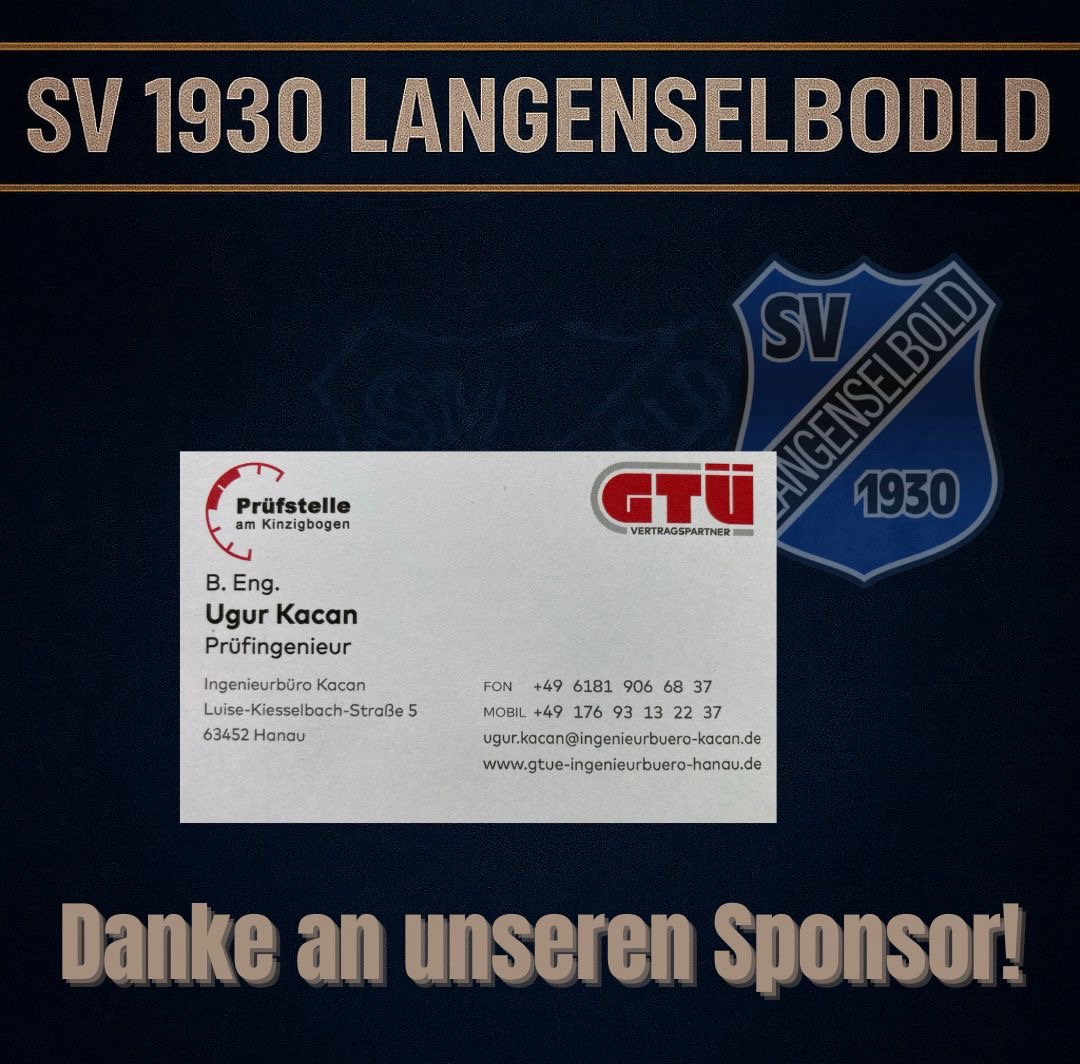 Der SV 1930 Langenselbold bedankt sich herzlich bei GTÜ Ugur Kacan, der bereits im zweiten Jahr in Folge an unserer Seite steht. Eure Unterstützung bedeutet uns unglaublich viel und zeigt, dass wir auf einen starken und zuverlässigen Partner zählen dürfen. 🙌