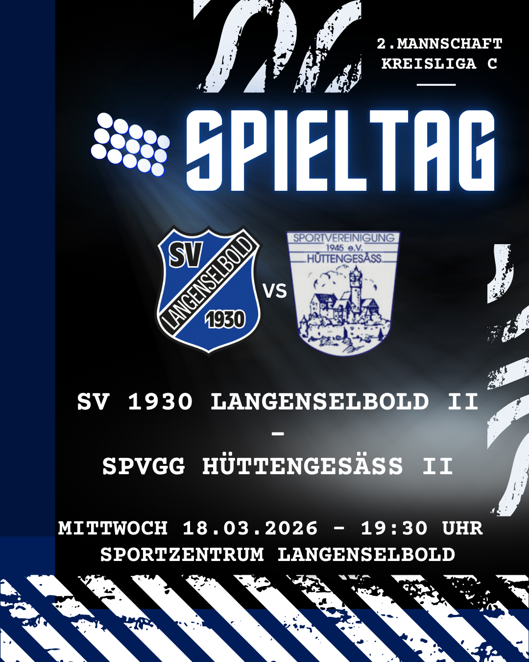 Derby für die Reserve Schreibe einen Kommentar / Von sv1930 / 17. März 2026 Derbytime für unsere Reserve! Am Mittwoch Abend empfängt unsere 2. Mannschaft die SpVgg Hüttengesäß II zum Flutlichtspiel auf dem Sportzentrum. Anpfiff ist 19:30 Uhr ⚽️💙
