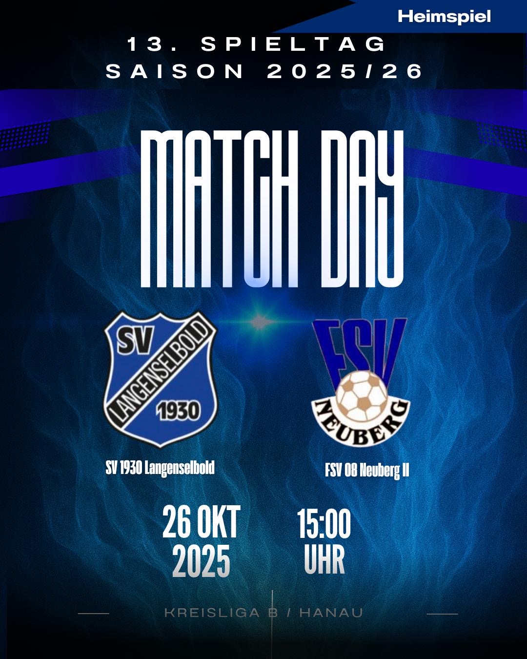 ⚽ MATCHDAY | Sonntag, 26. Oktober 2025 Endlich wieder Heimspieltag in Langenselbold! 💙🤍 Beide Mannschaften treten im heimischen Sportzentrum Langenselbold an – voller Einsatz und voller Support gefragt! 🙌 ⸻ 💥 1. Mannschaft 🆚 SG Neuberg II 📍 Heimspiel | Sportzentrum Langenselbold 🕒 Anpfiff: 15:00 Uhr Nach zuletzt schwerem Spiel will die Erste wieder punkten und zuhause Stärke zeigen! 💪⚽ ⸻ ⚔️ 2. Mannschaft 🆚 TSV 1860 Hanau II 📍 Heimspiel | Sportzentrum Langenselbold 🕐 Anpfiff: 13:00 Uhr Unsere Zweite will den Heimvorteil nutzen und sich endlich für ihren Einsatz belohnen! 🔥💙🤍 ⸻ 📣 Kommt vorbei, unterstützt die Jungs und sorgt für Heimspiel-Atmosphäre!